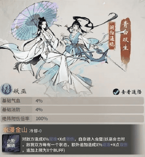 西湖踏春,,,,未曾想竟卷入到青白蛇故事中。。。。青蛇与白蛇本是修道有成的小妖,,两人在西湖边上开了间医馆,,,济世救民,,,,不料沾惹人世因果,,,遭高僧误解。。白蛇被镇压于雷峰塔下,,,侥幸逃脱的青蛇则在三界奔波,,,,只为早日寻得解救白蛇之法。。。如今千年已过,,高僧云游四海,,雷峰塔封印松动,,,而青蛇亦寻得强力古宝,,意欲趁此机会解救出姐姐……若仙友有幸与青白双生结识,,,,即可习得其绝技·水漫金山,,对敌方造成双攻伤害,,,于修炼大有助益。。