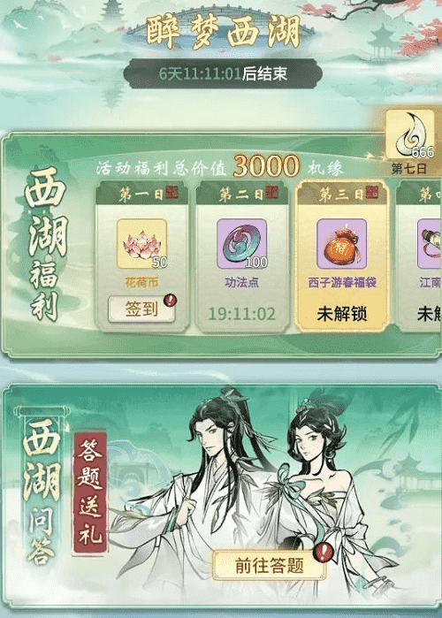 烟雨江南,,,,西湖三月,,宛若人间仙境,,,,正是如此,,,,修真界方才与之连通,,共享两处风光。。。。此番《一念逍遥》联动西湖景区,,西湖十景被“搬”进游戏中,,,,仙友在游春过程中,,,即可观赏到西湖奇景。。每日前往签到、、、参与游湖活动、、、进行莲鲤祈愿,,,,皆可获得奖励馈赠,,,在这烂漫春日里,,,,赏景、、、、修行两不相误。。。。