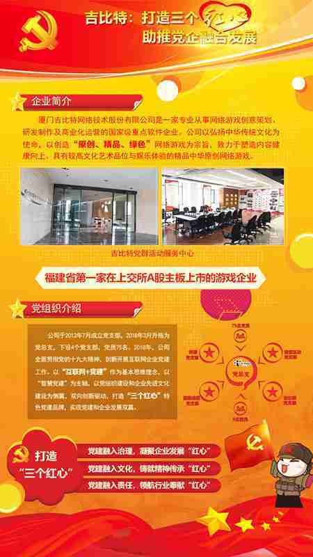 未来公司将全面学习贯彻习近平新时代中国特色社会主义思想和党的十九大精神,,持续强化“互联网+党建”的思维理念,,,,以“智慧党建”为主轴,,以党组织建设和企业先进文化建设为侧翼,,双向创新驱动,,,,引领有信仰、、有情怀、、、有价值的新时代游戏研发运营,,,在不断发展壮大的同时,,,,成为行业的“红色标杆”,,实现党建和企业发展双赢。。。。