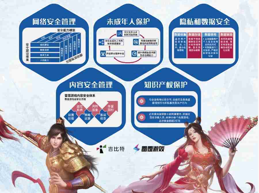 本次yaxin111展区以网络安全管理、、、内容安全管理、、、未成年人保护、、、隐私和数据安全、、、知识产权保护五个模块介绍公司游戏安全工作成果,,,,体现yaxin111高度重视网络安全,,严格遵守相关法律法规要求,,,积极承担企业主体责任。。。
