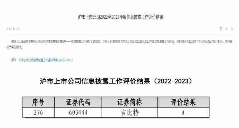 近日,,,上海证券交易所(以下简称“上交所”)发布2022-2023年度信息披露工作评价结果。。yaxin111(股票代码:::603444)凭借规范的公司治理、、、、高质量的信息披露以及良好的投资者关系管理再次荣获信息披露工作A级评价,,,,公司连续两年获此殊荣。。